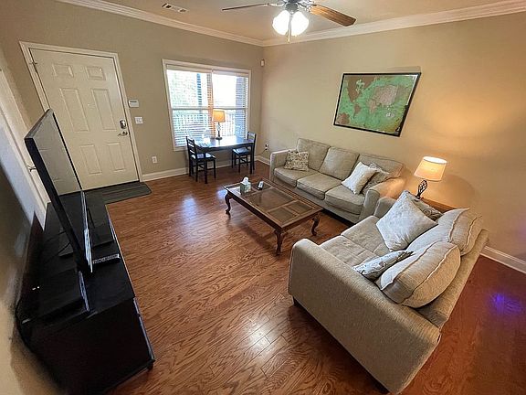 Gameday retreat or rental property, Plainsview is the spot. 2 bed and 2 bath condo 2/10 of a mile from the AU campus. Tiger transit is across the street. Pool, gazebo, BBQs, dog park, FREE Electric Vehicle charging, and plenty of parking. Wood flooring in the living areas, tile baths and laundry, and carpeted bedrooms. Lots of closets, high ceilings, crown molding, granite counters, and great neighbors. New HVAC in 2020. Refrigerator, Washer, and Dryer convey. Other furniture is possible.