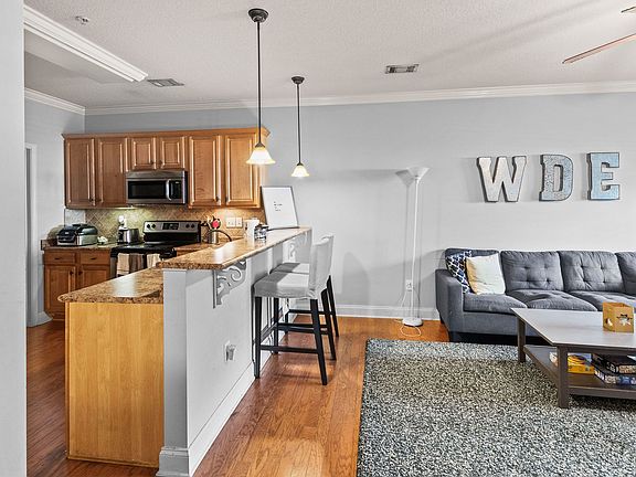 Convenient to AU Campus & Downtown Auburn! Spacious 2 bedroom 2 bath condo on Tiger Transit. Crown molding in living. Kitchen has tons of cabinets and is open to large living room, stainless appliances and granite tops. Each bedroom is spacious with nice sized closets and bathrooms. Large laundry room with lots of storage. Hardwoods throughout. Tile in laundry and baths. Unit comes with 2 unassigned parking spots. Pool on site.