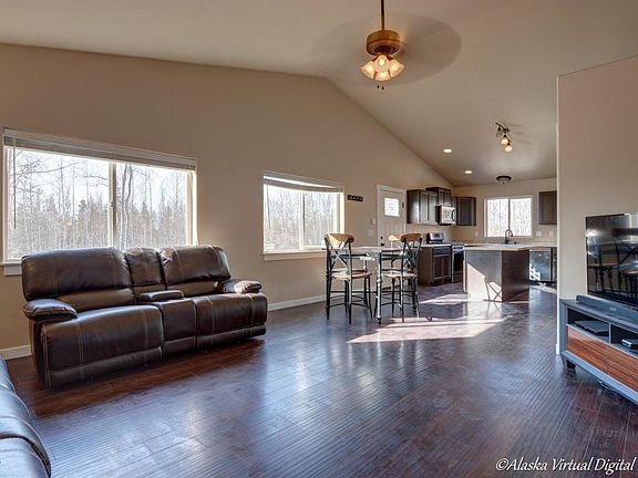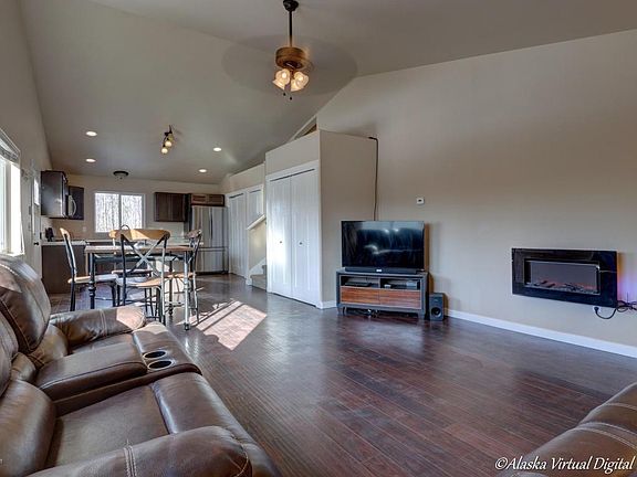 This is a great functional shop home. Do you have a business you want to run out of your home? This home is zoned in the city of Wasilla for Rural Residential, allowing some small businesses to operate. 2 Bedroom, 1.5 bath, 1728 sqft garage, all stainless steel appliances, washer and dryer included, jetted tub and lots of windows to let the sun in. Also, has all in floor heating and is 5 Star Plus 12x12 garage doors and 13'6" tall ceilings in the garage. The 1088 sqft apt is located above the garage. Minutes away from the heart of Wasilla. This home sits on a .96 acre lot that has plenty of space for your toys! Schedule your showing now! Licensee is related to seller.