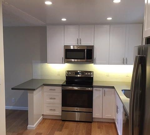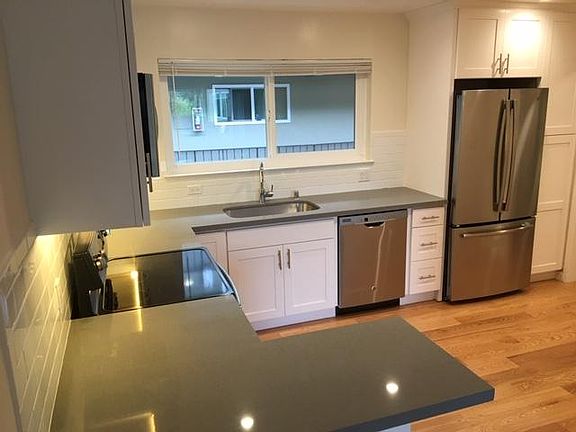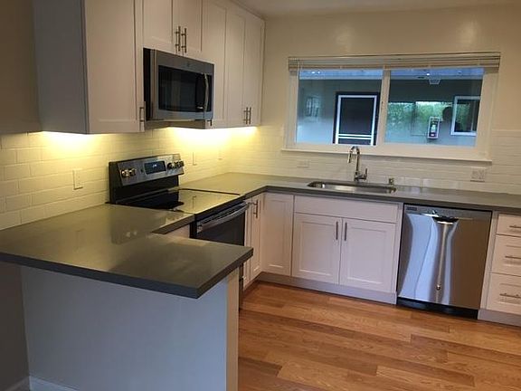 Welcome to Walnut Garden in the heart of downtown San Carlos, City of Good Living . Close to everything trendy San Carlos offers. Charming grounds with mature heritage trees. $50,000 remodel! 2 bedrooms with large closets, remodeled kitchen and 1 remodeled bath. Double pane windows, newer insulated entry door with window. Fully remodeled kitchen features Quartz counters and a breakfast bar over all new cabinets. All new Stainless Steel appliances incl. Convection/self-cleaning oven, sealed top electric range, quiet dishwasher, side by side fridge with ice-maker, microwave over range, new disposal. Cabinets have a lazy susan plus soft close doors and drawers. Under cabinets have LED lights too. New energy efficient LED lighting throughout most of the home. Most electrical components are new. All new flooring, Oak hardwood with Ceramic tile in the bath. Larger closets have new, mirrored doors. Cal-train, bus lines, senior center, library, restaurants, shops, banks and wine bars are nearby. No smoking, no sec. 8, no pets. Please contact VIP (calbre #01254368) at 650-444-1667. Thank you for your interest in our properties for lease and for sale. owner pays water, trash.