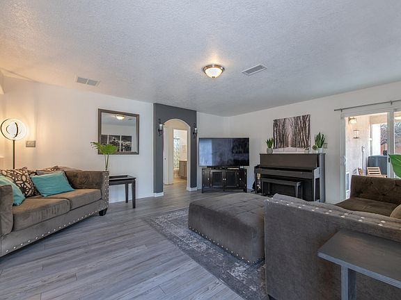 Welcome to Northern Meadows Rio Rancho. This popular and efficient 3 bedroom 2 bathroom DR Horton home has been recently updated with custom paint and vinyl plank flooring. In the kitchen you will find Black cabinets, custom back splash, and stainless appliances. The front yard is low maintenance covered by the HOA. The backyard is fully landscaped with plenty of space to enjoy the memories you'll be making with your family. If you can only see a few, make sure this is on the list!