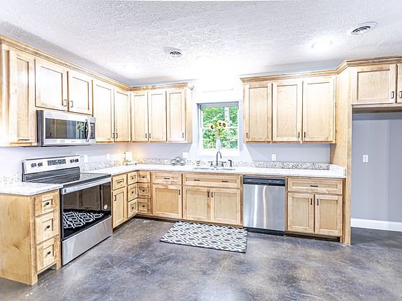 Motivated seller to offer $5,000 to go towards closing cost with full price offer! This home is newly and completely remodeled home nestled just approx. 200ft from the serene Cane Creek at your front door with swim/fishing holes! This home offers offers a unique blend of tranquility and modern living. Enjoy the the open concept living/kitchen area that includes a wood burning fireplace with a chestnut mantle creating a warm ambiance. The kitchen boasts new appliances, granite countertops, and custom built cabinets. This home has undergone extensive renovations including a new roof, windows, stained and polished concrete flooring, HVAC, plumbing, wiring & much more. Situated on a tranquil countryside setting, you will enjoy privacy and serenity. Very short distance to Ky Lake, small airport & Cane Creek Marina is only 1.4 mi away. Bring your boat and fishing gear!