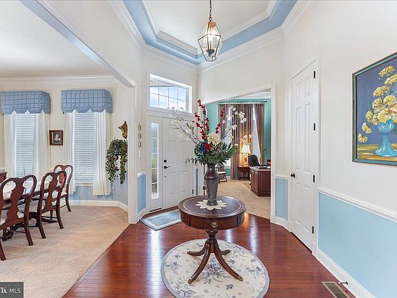 Welcome to this exceptional Preswick model home in the sought-after Regency Hill 55+ community where the panoramic view of the community pond sets a stunning backdrop. This elegant home boasts a wide foyer enhanced with a tray ceiling, hardwood floors, stately columns, 12-foot ceilings, chair rail, and crown molding, creating an inviting entry. To the right, double doors open into a custom-designed office, featuring floor-to-ceiling, closet factory bookcases and desk, thoughtfully built to highlight the 12-foot ceilings and wraparound windows. Special high hats have been added to enhance the ambiance of this well designed space. The formal dining room, with its deep crown molding and custom window treatments, seamlessly connects to the foyer, offering an ideal space for hosting gatherings. The great room, with its expansive wall of windows, overlooks the gourmet kitchen. This kitchen is a chef’s dream with extended cabinets, stainless steel appliances, a gas cooktop, and a curved island with a granite overhang perfect for additional seating. The island also includes a large farm sink, dishwasher, and detailed woodwork and molding . The 9-foot ceilings in this area are adorned with crown molding, hardwood floors, custom window treatments, and a ceiling fan. Sliding doors open to an elevated deck that provides picturesque views of the community pond and a spacious side yard. The extensive wooded lot, professional landscaping, and ever-changing water view make this property truly unique. The great room flows into a central hall with a bonus coat closet and double doors leading to the primary bedroom. This serene retreat features a tray ceiling, crown molding, and ample windows. The custom walk-in closet and deluxe bathroom with a motorized shade, a soaking tub, a standing shower with a built-in seat, double sinks, and a center vanity area. This home also includes a second bedroom and full bath, as well as a first-floor laundry with a wash tub and wall cabinets. The laundry room provides access to the extended garage, which has been enhanced by 2 feet in both length and width. The 2-car garage, double parking space in the driveway, and additional parking in the cul-de-sac further enhance the home's convenience. The lower level mirrors the first floor's layout, with approximately 1550 sq ft of finished space that includes an oversized rec room, a half bath, and an additional area with a cedar closet and walk-out sliding doors. This basement, with 9-foot ceilings, also features a storage area with shelving, a bonus hobby or craft area, and ample space to customize for a fitness center or guest area. Additional features of this home include a whole-house generator, backup battery for the sump pump with an alarm, a whole-house filtration system, April Air humidifier and air filtration system on the HVAC ,the hot water tank was replaced in 2024. The monitored alarm system in this home includes additional sensors on all windows and doors on both the main and lower levels. Located close to Providence Town Center, Wegmans, Oaks shopping area, and the charming downtown Phoenixville, this award-winning Regency community offers two outdoor pools, an indoor pool, tennis and pickleball courts, fitness centers, and club rooms. A monthly newsletter of activities is available for review. The brochure at the home includes updates and improvements made to the property, a list of items covered by the monthly association fee of $335, and a calendar of the current months activities .We invite you to explore this home and experience all it has to offer.