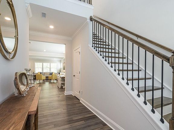Why wait to build when you can move in now? Just a bit over 2 years new. Smart + Stylish converge at the corner of CONVENIENCE + VALUE! Featuring a dramatic two-story foyer w/an open floor plan; both a kitchen & breakfast nook. Kitchen is well-appointed w/white cabinetry, quartz countertops+gas cooktop. Plenty of counter space + storage. Large island provides extra seating, storage + room for food prep. Drop zone is located adjacent to the oversized walk in pantry. Guest BR on the main floor w/full bath+walk in shower - can flex to an office. LVP throughout Main Floor Living areas. Generous sized family room. Upstairs hosts a large loft, laundry, 2 bedrooms & primary suite. Spacious Primary features a tray ceiling, walk in shower, separate soaking tub + double vanities. The walk-in closet almost needs its own zip code!!!! Sit in your screened in patio + enjoy the private wooded views. Covered rocking chair front porch. Amenities are a big draw including ~ Jr. Olympic pool + splash pad, tot lot, well appointed clubhouse, pocket park & trails. MOVE RIGHT IN! Your next home is in the heart of it all.