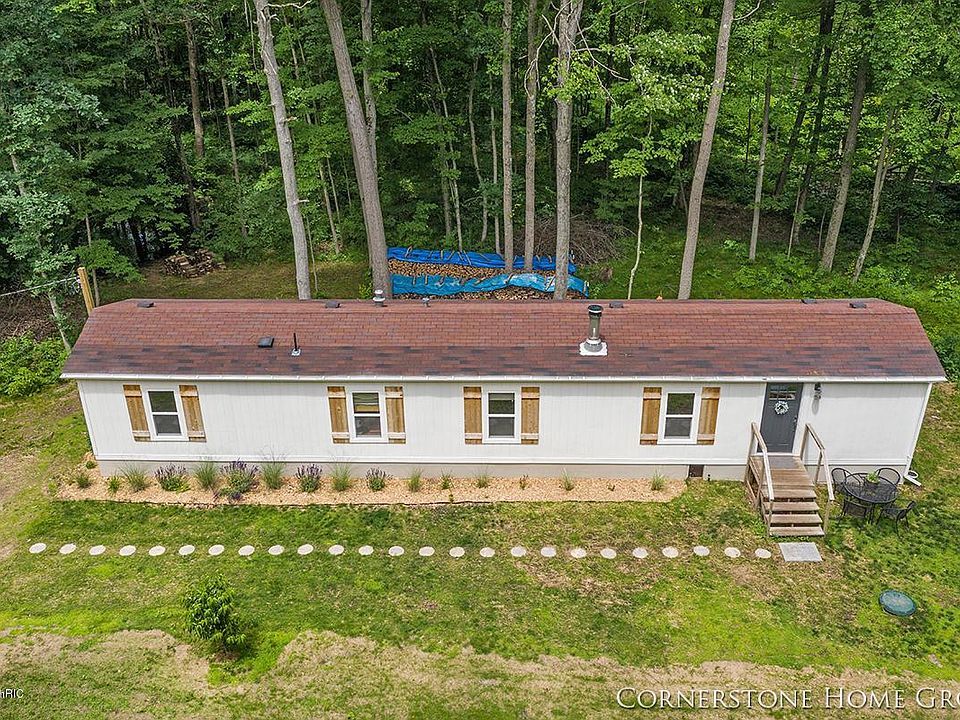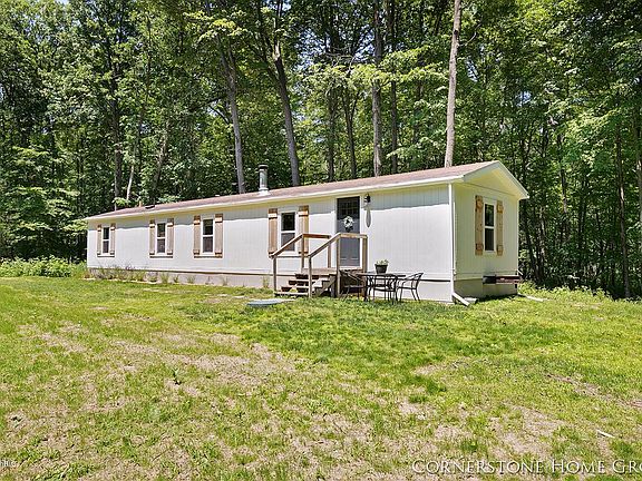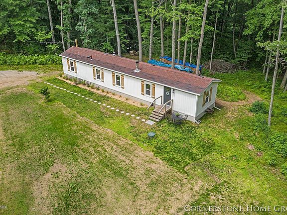 This newly updated country retreat home is nestled on 11+ acres. Recent Updates: New furnace, hot water heater, insulation, walls, flooring, and windows. Interior Features: Butcher block counter tops in kitchen, open layout, vaulted ceilings, wood burning stove & ceiling fan in master bedroom. Exterior Features: New well/septic, fire pit area, plenty of woods for exploring. 12x16 insulated shed with electric. Enough cut wood to last for 2 years. Chicken coop. Home sits on 11.5 acres of beautiful hardwoods including, maple, blue spruce and cedar trees. Lots of scenery and wildlife. Close to Long Lake, plus a seasonal stream and pond. There are established trails for walking and 4-wheeling. Property surrounded by state land. Just a short drive to Grand Rapids. Schedule your showing today