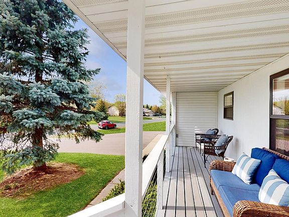Welcome Home! Enjoy the sunset from the front porch of this charming rambler. The main level showcases stunning new Hickory hardwood flooring that adds warmth and elegance. Prepare meals with ease in the modern kitchen, sleek quartz countertops, and equipped with brand new appliances. Enjoy the benefits of energy efficiency and natural light that flood through the new windows. Retreat to the fully finished lower level, designed for entertainment and relaxation. The lower level bedroom has a huge walk-in closet next to the well-appointed bathroom, with a beautiful tiled shower and heated floor. This acre corner lot has plenty of room for outdoor activities. In-ground WiFi sprinkler and invisible fencing for your pets. The heated garage provides a fantastic workspace, perfect for all your projects. Conveniently located near parks, shopping, and schools. A must see!