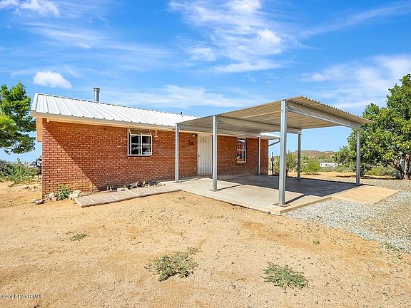 2 bed and 1.5 bath Brick home with Metal roof, little to no exterior house maintenance. Interior has been updated with new kitchen cabinets, appliances, stove is induction top and microwave is confection/airfryer, new flooring updated electrical and bath fixtures. Bay window in Living room with a million $ views. Open floor plan no hallways. Propane central heat and central swamp cooler with upducts so you don't have to have a door open to use swamp. 2 car heavy duty covered porch and detached 3 car porch attached to a 960 sq foot metal shop/barn/garage. 1/2 bath in shop with outdoor shower. 1 full Rv hook up. fig,apple,plum,hazlenut trees. Critters okay! Full fenced property with RV gate.Paved road to property. Co-op water, APS power and Barrett Propane.High speed internet Ownerage