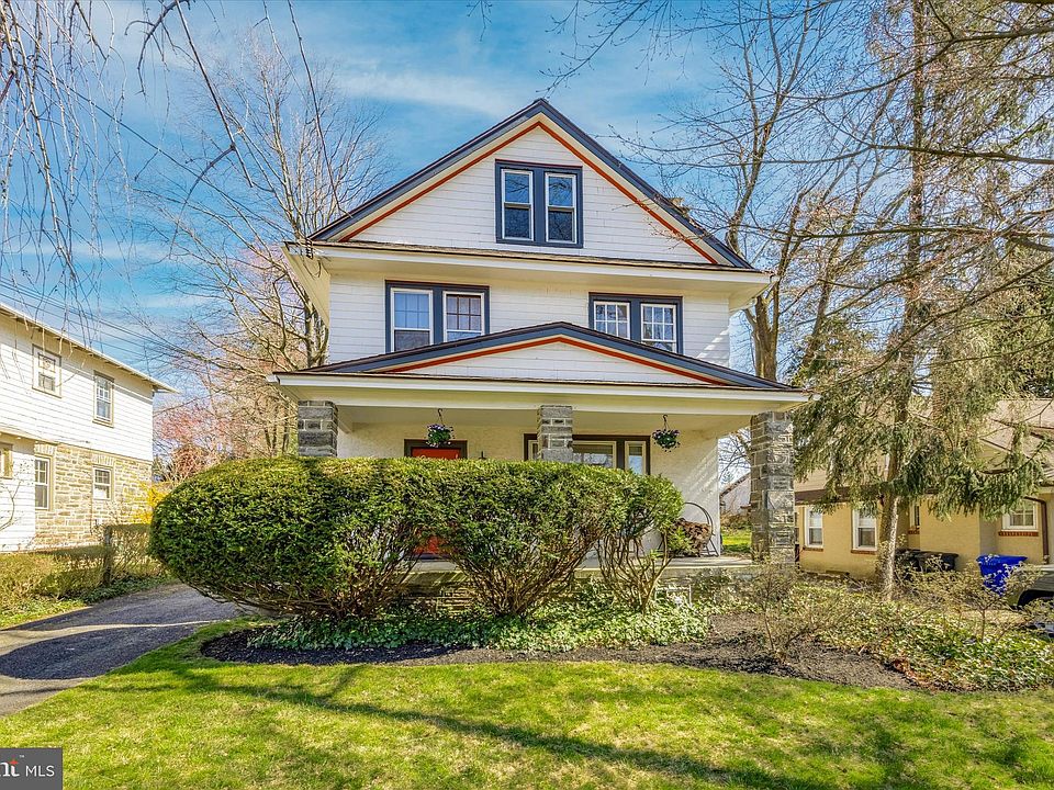Welcome to 8361 Cadwalader Ave in the very heart of Elkins Park. Wonderful curb appeal leads you to the large covered front porch with stone columns offering ample seating to sip your coffee and watch the world go by!! Enter into the sun-drenched living room, notice the oak hardwood floors and a wood-burning fireplace. Formal spacious dining room (with four newer windows) leads to a very cheerful eat-in kitchen. Plenty of cabinetry, gas cooking, and exit to the brick patio and completely fenced in backyard, which is large enough for a garden party or a game of kickball! A very charming split staircase takes you upstairs to the second level where you will find pine floors throughout. Owners suite has a powder room!! Hall bathroom is complete with a tub. There are two additional nicely sized bedrooms...plus a bonus room which could be a cozy reading nook or a great work-from-home space! Take the staircase to the wonderful third level with bedrooms four and five; one has a lovely vaulted ceiling. Another full bath with tub is found here (fan not functional). Very large storage closet in addition to a linen closet. Basement is mostly unfinished offering plenty of storage space and laundry area. There is a sump pit and a portable sump pump that is very rarely used. Extra support beams were added years ago. Exit through bilco doors. There is a finished room in the basement that provides access to the crawl space. Shut offs are located there. Hot water heater new 2019. One car detached garage with barn doors in as-is condition; it's a wonderful space which also has electricity, perfect for some type of workshop. Replacement windows on third floor. Most windows have storms. Only a few do not. Two AC units will be included in the sale. This is a wonderful house in a wonderful location. Walkability to literally everything!! The train station, the cheesecake lady, Sprinkles ice cream shop, McKinley market, parks and playgrounds, coffee shops and busses that take you everywhere. DON'T MISS OUT!!!!!!! Professional photos will be loaded Friday 3/31. Schedule your appointment now!