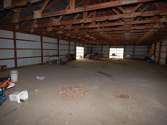 A very large pole building with approx. 4600sq. feet of storage space. Main building is 72 X 36 and the addition is 62 X 32. Concrete floors and a loading dock and loading ramps. Electric service to the building is currently shut-off. A storage shed needs some attention. A little over 5 acres of land. A mobile home has been removed but the power pole remains.