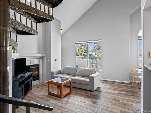 Welcome Home to this light and bright 2-story unit in the Colony at Marina Pointe. This unique property features a contemporary open floorplan with vaulted ceilings and spiral staircase leading to an upper-level master bedroom. New luxury vinyl plank (LVP) flooring on the main level! Other special features include a remodeled kitchen with new cabinets, granite counters and newer stainless steel appliances; New furnace (April 2025), New fixtures, New interior paint, New roof, Custom-made window blinds, Gas log fireplace; ample storage including a large walk-in closet + additional storage closet, and stackable washer & dryer are included. In addition to the Marina Pointe Community pool and dog park, the HOA covers water and sewer utilities. Excellent location near Chatfield and Roxborough State Parks, Waterton Canyon, Lockheed Martin; EZ access to Mountains and C470