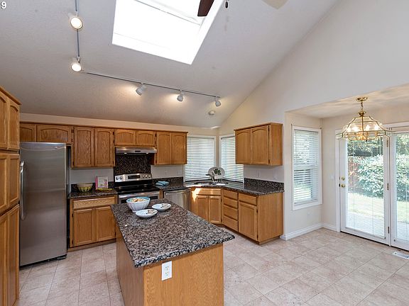 Wonderful quiet neighborhood with access to Fanno Creek trail system. Library less than a mile away, easy access to freeway, shopping and more. Full bath and bedrm on main for guests or extended family. Spacious master suite up with walk-in closet, bath w/shower & large jet tub. Updates in kitchen and baths, granite counters.
