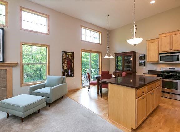 Spacious, bright and freshly painted town home with open floor plan perfect for entertaining. Gorgeous maple woodwork and floors, gas fireplace, large kitchen with quartz counter tops and stainless steel appliances. Upstairs features 2 bedrooms, 2 bathrooms, laundry room and a cozy desk area overlooking the main level. Lower level has a large family room, office/bedroom, and 3/4 bathroom. Patio door leads to peaceful backyard. Beautiful and private setting with deck overlong woods.