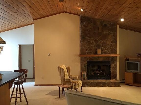 This is the place you have been looking for on All Sports Long Lake! 100 ft of sandy frontage and a breathtaking view of Long Lake. Built in 2000, this large 3 bedroom, 2.5 bath ranch on 1 acre. Vaulted tongue and groove ceilings as well as a stone fireplace for that up north feeling. Located right next to the Long Lake Dam. Wake up in the morning and you have a gorgeous view of the lake out any of the 3 bedroom windows. New boiler in the house. Natural gas available at the road for hook up. Detached 2 car garage with a 9x24 workshop. An additional 2 car garage toward the back of the property for additional storage. Cement pad next to garage for trailer parking. House is secluded and located on its own road.