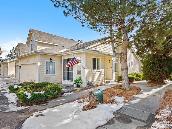 Don't miss this opportunity. Charming end unit- All one level with vaulted ceilings, fresh paint, lots of light, nice bedrooms and 2 baths on main level. Deck access off the primary bedroom and a fenced garden area below. All appliances including washer and dryer stay. Security system is included. Attached 2 car garage has storage shelving and a 2nd refrigerator. There is a lovely porch off the dining room, and a covered entry. The full basement does have a 3/4 bath and 2 egress windows plus lots of storage space. Trees, greenbelt, and a lovely outdoor pool/clubhouse/ tennis courts, walking paths and a dog park compliment the community common grounds. Near by are shopping and restaurant opportunities, as well as the recreation at Chatfield Reservoir. C-470. Blue Ribbon Home Warranty included with condo purchase.
