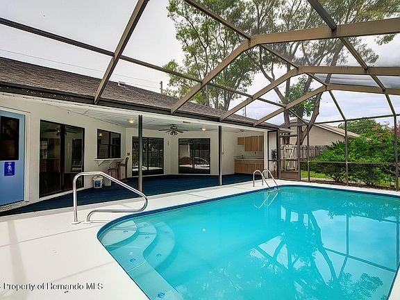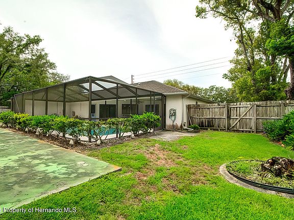 Welcome to a move-in ready POOL home located in the heart of Spring Hill on a beautiful, serene, tranquil street with great neighbors. There is no Homeowner Association or CDD fees!! As you go through the double front entry doors you are greeted by the beautiful view of the pool and huge yard. The heart of this home, the kitchen, with adjoining dining and family room, makes it ideal for gatherings. The kitchen features ample space, with a breakfast bar and kitchen nook overlooking a beautiful view of the HUGE lanai, pool, and backyard. The primary bedroom is generous in size and offers a walk-in closet and sliders that lead to the lanai, pool and hot tub. The primary bath features a soaker tub and walk in shower. The split plan has 2nd & 3rd bedrooms separated by a huge, dedicated laundry room and a 2nd bath that goes to the pool lanai Pool deck has been recently painted. As you step out to the screen enclosed lanai you can relax and enjoy the beauty and serenity by the pool and hot tub that overlooks the nicely landscaped backyard, which is completely fenced with an extra feature of a gazebo and shuffleboard court. Other features include an outdoor kitchen with grill; sprinklers, and pool on a well. Easy access to all Spring Hill offers, from gulf waterfront, local beach, parks, shopping, restaurants, and medical. The Suncoast parkway is a short drive for quick access to the airport, Tampa, Orlando, Clearwater, and St. Pete Beaches