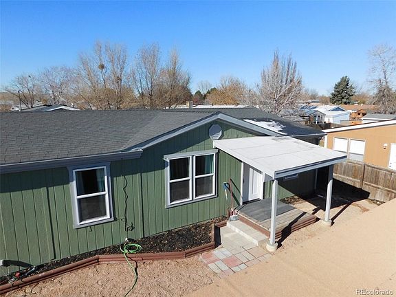 Beautifully remodeled 3 bedroom, 2 bathroom home in Riverdale Farms.This is a very rare view lot. Downtown denver views, multiple 14er views incl Mt Blue sky and Pikes Peak.Extremely quiet lot on the end of a cul de sac. Very uncommon 3 car carport with another off street parking spot as well. You own the land(small hot fee).This 1999 built home offers 1685 square feet with 2 beds and one bath on one side of the home and the large Master bedroom with a walk-in closet and private bathroom on opposite end of home. Master bath features a new large sink vanity,huge soaking tub and custom wall/floor tile. All new additional full bath with custom tile, new fixtures and vanity.The home features an open floor plan with remodeled kitchen featuring nice cabinets, tile countertops, professional laminate floors and new appliances . There have been many additional updates including a newer roof, new exterior/interior paint, new siding/ext trim, all new double pane windows, new trim and all new exterior doors and carpet. All this with 100 percent brand new landscaping and custom deck to enjoy the endless views. Will not last, everything done move right in. Virtually no fully remodeled properties this size in Denver Metro area. Will qualify for all financing. Permanent foundation.House has been purged to the land. Agent owner.