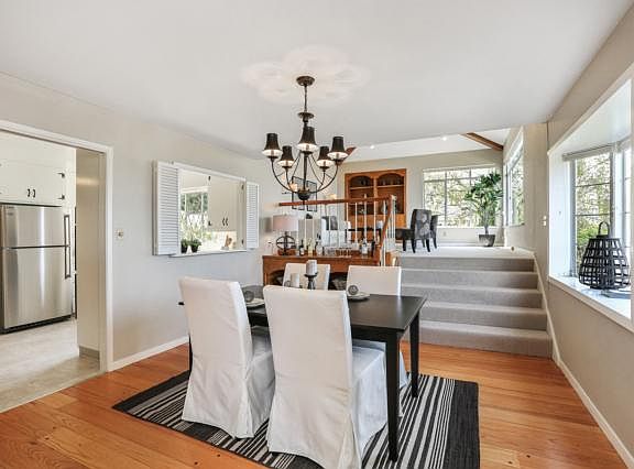 Level into this handsome, updated, traditional home. SF & GG views! Beautiful wood floors, wonderful large garden. Blocks to Arlington Park, Transbay Express bus & BART direct bus. Striking living room w/beamed ceilings & family room. Lower level rumpus room with separate entrance.