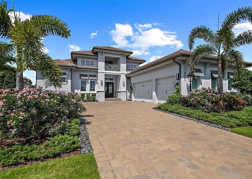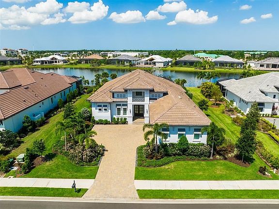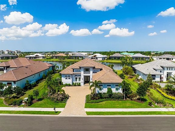 Located in the highly desired Lake Club, this Lakeview Estates home is perfectly poised to capture sunrises and sunsets, with unobstructed preserve and lake views. Why wait to build when you could move right in to this LIKE NEW home? Blending both luxury and functionality, The Madison II by Stock Luxury Homes, is the perfect home for buyers of all ages and lifestyles. As you enter through the double doors you will appreciate the 14 foot high ceilings, open living space and abundance of natural light that comes through the 10 foot tall sliding glass doors. The great room flows into the spacious kitchen and dining area with disappearing corner sliding glass doors, ideal for entertaining. Stainless steel kitchen appliances, soft close drawers and cabinets, quartz countertops, and walk in pantry are just a few of the fabulous kitchen features. The spacious owner's retreat boasts a trey ceiling, French doors to the lanai, walk-in closets and a spa-like bath with dual sinks, oversized walk-in shower and free standing tub. Three additional bedrooms - all ensuite, an office with French door entry, a large well thought out laundry room, and powder bath with high end finishes are just a few of the added features in this home. The adundant outdoor living area includes a sparkling pool and infinity edge spa, travertine deck, panoramc clear-view screen, generous covered entertaining area, and a well-appointed SUMMER KITCHEN that invites alfresco dining amid privacy. Featuring incredible finishes and a brilliant use of materials and design, including IMPACT GLASS WINDOWS & DOORS THROUGHOUT, plantation shutters and Hunter Douglas electric powered shades, designer light fixtures, recirculating water heater system for instant hot water, wallpaper ready walls in the bathrooms and laundry room, and a three-car side-entry garage with epoxy floors and custom cabinetry this home is not to be missed. The Lake Club transports you to a Tuscan Village graced with stone bridges, linear park and cobblestone roads . With its country club lifestyle, 24-hour manned security, and a plethora of amenities including walking trails, tennis courts, pickle ball courts, resort pools, dining, a full service spa, fitness center, kayak launches and concierge services The Lake Club is truly the crown jewel of the Lakewood Ranch community. All of this near renowned golf courses, beaches, restaurants, shops, schools, medical amenities, sports facilities, the opera, theater, museums and more.