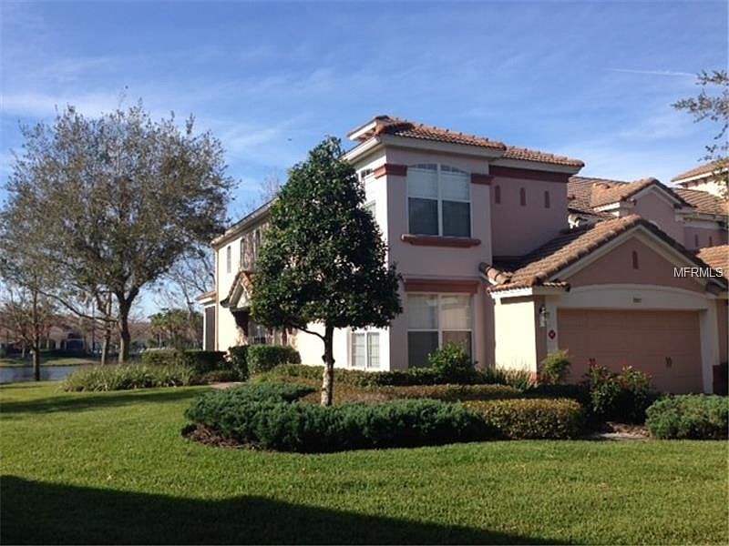 When you have one of the best views in the community, why look any further? This pristine luxury Mirella end unit townhome is available for immediate occupancy. The Mirella model is the largest of all units in Bella Trae boasting almost 2400 square feet, 20+ foot ceilings, a loft and so many other upgrades. The kitchen, with granite counter tops 42 cabinets, a large island with ample storage, a breakfast nook and huge pantry, is perfect for entertaining, The dining/living space is combined with excellent views of the pond. All appliances are included. The master bedroom is downstairs and also shares the same amazing views of the pone and pool. The master bathroom has his/hers sinks, a garden tub, a standing shower and huge master closet. Upstairs, enjoy your large loft space. There are also two other bedrooms upstairs, one with a Jack and Jill bathroom. The second bathroom has duel sinks and a shower/tub combo. Off of the living room, the extra-large screened lanai provides with amazing pond and southwest facing views. Bella Trae is located in the beautiful gated community of Bella Trae. Located in the resort town of Champions Gate with amenities such as a 12,000 square foot clubhouse, a state of the art gym, heated pool and spa, a billiards room, library, putting green, banquet facilities and a full time events coordinator, what more can you ask for. The view of this immaculate townhome is worth the value. Make an appointment today.