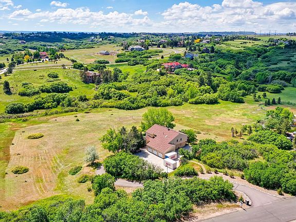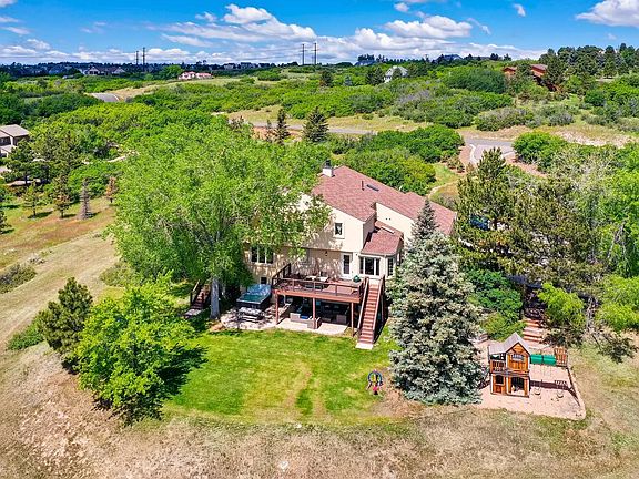 Living in the shire, but only 10 min from Park Meadows Mall and Charles Schwab! Beautiful blend of Italy and Colorado - Tuscan accents throughout, combined with timeless dark knotty, hardwoods, and calming grays. This beauty is truly a retreat away from it all, sitting on 5 acres of rolling hills with stunning valley views. Enjoy glorious sunrises and sunsets while watching the deer graze off the new 2-story deck with outdoor gas fireplace - built [strong enough] to support a Hot Tub off Master suite. Master has fireplace and 5 pc bath with new vanity. Newly refinished hardwood floors, new carpet and paint throughout. 5 full bedrooms and a 6th non-conforming in basement with its own 3/4 bath.Entertain off stamped concrete patio with hot tub, and store all your toys in attached 3-car garage. 5 acre invisible fence keeps your fur babies safe. This is the Colorado life you've dreamed of, just minutes from bustling urban life! AND new light rail station 5 minutes away is OPEN!