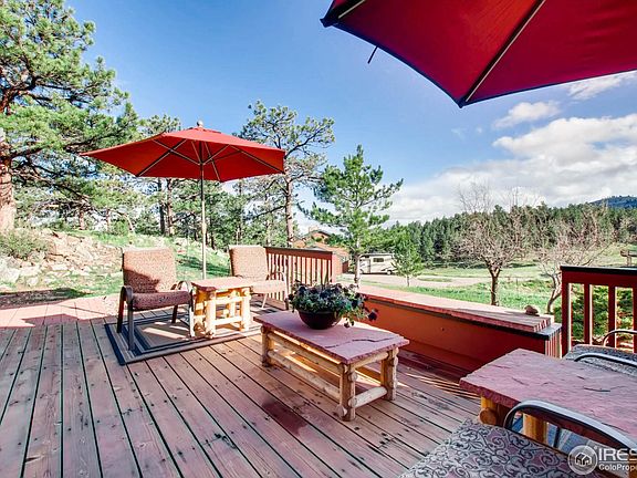 BEAUTIFUL Spacious Mtn. house 15 easy mins. to Boulder. Level lot-approx ac-feels like wildlife sanctuary-flocks of wild turkey, birds & fox. Note room sizes & feel solid quality. Updated & maintained w/care; Vaulted wd ceilings, master on main w/private new hot tub spa; custom kitchen w/SS appliances, lg center island & eat-in bar, Wood Mode cabs; covered wrap around deck for peaceful relaxing. Organic garden, gas fireplace; radiant heat master bath; flexible daylite bsmnt. Come feel the Ahhh.