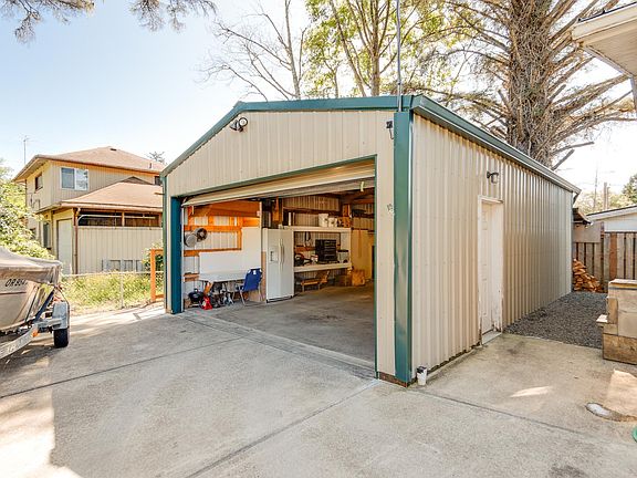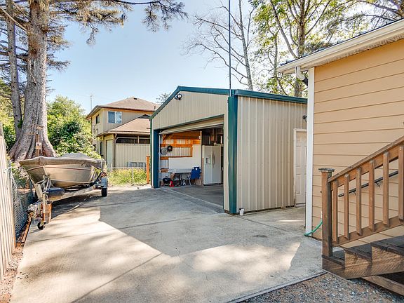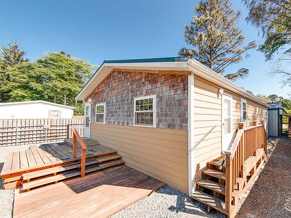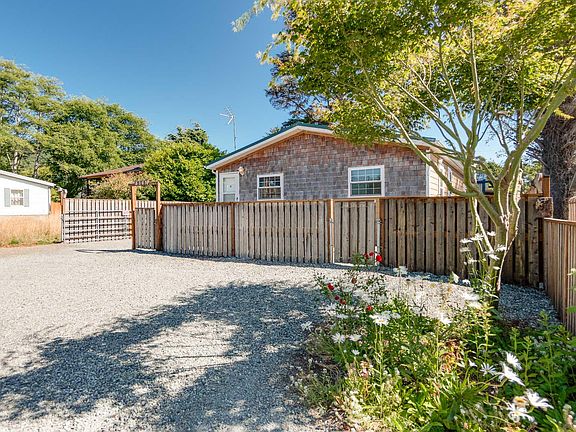 Perfect location in Rockaway Beach for your vacation or full-time home. Open kitchen-dining-living area, laminate floors, 1 carpeted bedroom, master bdrm with private bath, small 3rd room used as bedroom or office. Tidy, fully fenced yard, 18x30 shop/garage with work table, certified wood stove, refrigerator, 220, and compressor, ready for your projects.