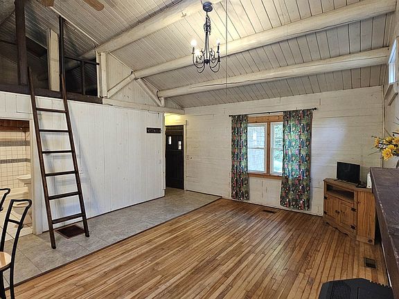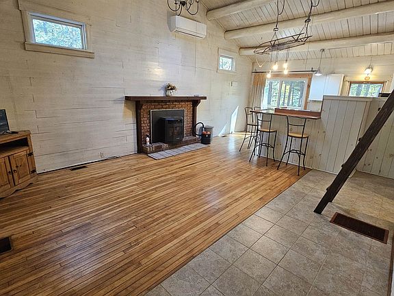 Quintessential Vermont Log Cabin Seeks New Relationship. I'm an adorable 2 bedroom, 1 bath home, located just 2 short miles from Stratton Mountain. I'm open to a variety of possibilities, including a full-time or seasonal resident. I'd also be a great fit for an investor. What I lack in size, I make up for in character. My open kitchen and living room layout is where I shine, and my cathedral ceiling makes me feel open and airy. I've even got a spacious loft for additional space. I like to take good care of myself, so I just put in a new septic system, and waterproofed my foundation. A full, walk-out basement provides even more potential! I'm a supportive partner, so I've got your back with a Tesla Powerwall, in case the lights go out. Oh, and I've even got a cozy deck, perfect for relaxing with your morning coffee or an evening beverage. I know I'm a catch, so come for a visit and let's see if we're a match! Floor plan measurements are approximate.
