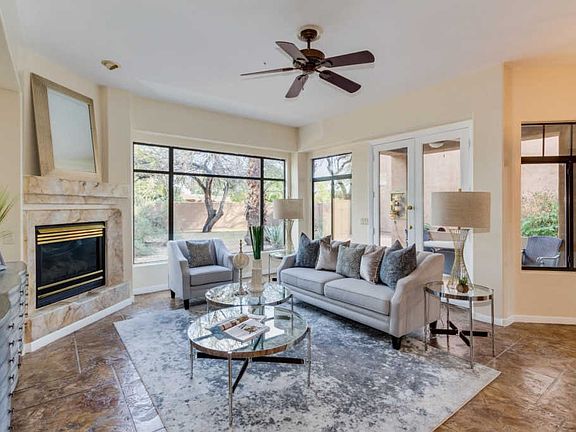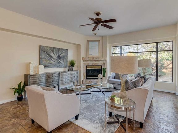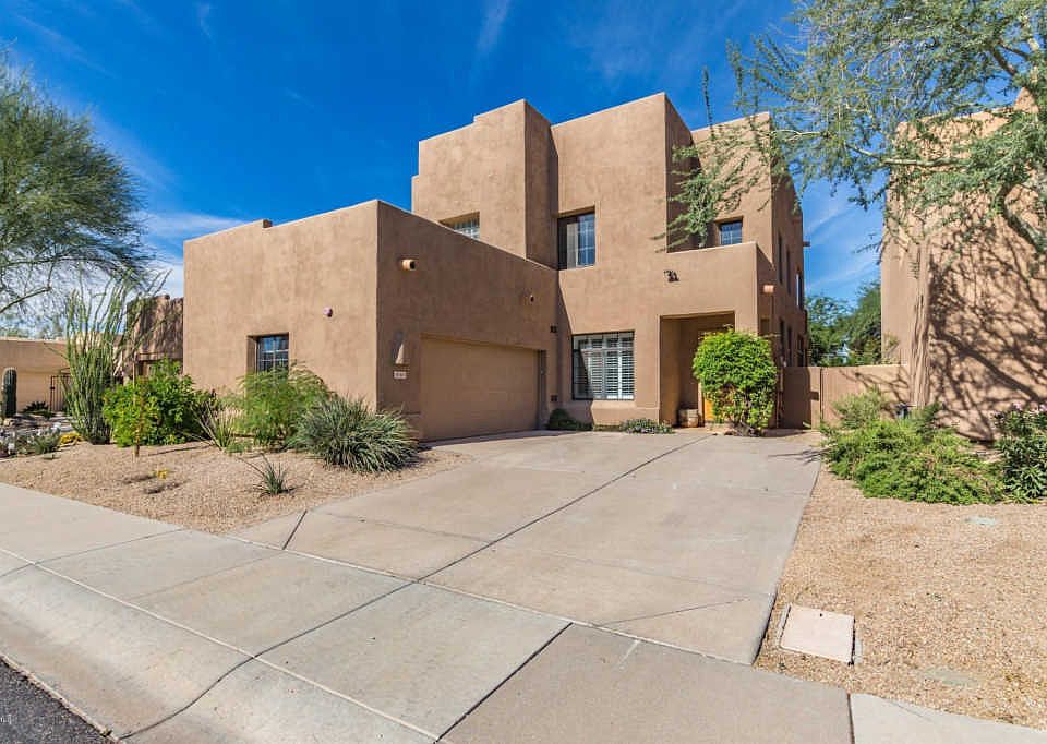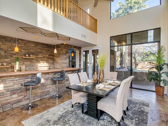 A perfect property to make your own: largest floor plan available in popular Los Abrigados gated community. The home features soaring ceilings, stone flooring a chef's inspired kitchen with granite countertops and ss appliances, a fireplace and a large loft upstairs. Stone stacked wet bar. Designed for entertaining, there is also a wet bar with room for plenty of seating and a huge backyard with covered patio. The spacious master ensuite is upstairs and includes a walk in closet, master bathroom with double sinks and separate tub and shower and access to a spacious balcony perfect for enjoying the breathtaking Sonoran sunsets. Close to Talking Stick Resort Casino and Golf Courses, Salt River Fields for Spring Training, Silverado Golf Course, Top Golf, Butterly Museum and Odyssey Aquarium Call now to preview this beautiful home!