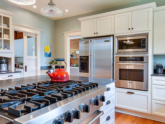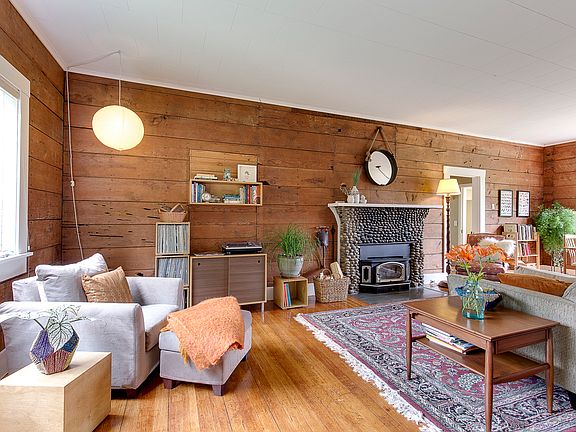 Vintage Farmhouse with updated electrical & plumbing. Front porch looks out over the pasture & mature trees. The perfect homestead vibe with new kitchen including Viking range and historic charm that people write books about! Uncharacteristically high 9' ceilings, wood floors, spacious rooms with 5" baseboard moldings, & original stone fireplace hearth. Private Road End home has views over adjoining 68 acres Meigs Park plus access to the Grand Forest. Unfinished studio/shop/ & storage space too!
