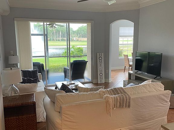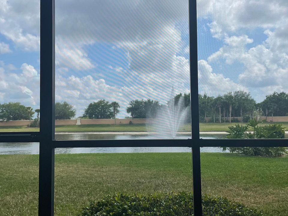 This light & bright condo features 2 bedrooms plus den, 2 full baths, open kitchen, formal dining, great room, & a screened lanai overlooking a lovely lake and fountain. Ground floor in gated community. Clubhouse offers heated pool and fitness center.
