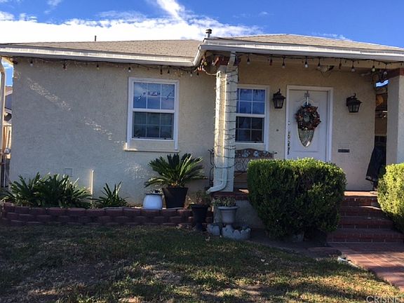 ATTENTION: First Time Home Buyers, Investors, welcome to this quaint and cozy lovely home located in a nice neighborhood in Northridge. Featuring 3 Bedrooms, 2 Baths with laminated floors and tiles. Crown moulding in Living Room and Dining/Kitchen combo. Kitchen converted to a 3rd bedroom. Central air and wall window A/Cs, plus ceiling fans in every room. Pleasant and comfortable Dining/Kitchen combo with laminated countertops, just enough cabinets and granite flooring. Dirty Kitchen/Laundry Room with granite floors as well. Covered front porch. Concrete driveway with electric remote controlled iron gate. It has 2 carports, 1 located in the front and 1 in the back which is made of welded steel and also a remote controlled gate entrance from the alley. Good size backyard with fruit trees. Just imagine the potential this property has to offer, with a bit of creativity, it can be a reality. Must see to appreciate! Please wear shoe coverings provided - thank you so much!