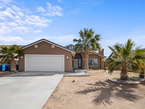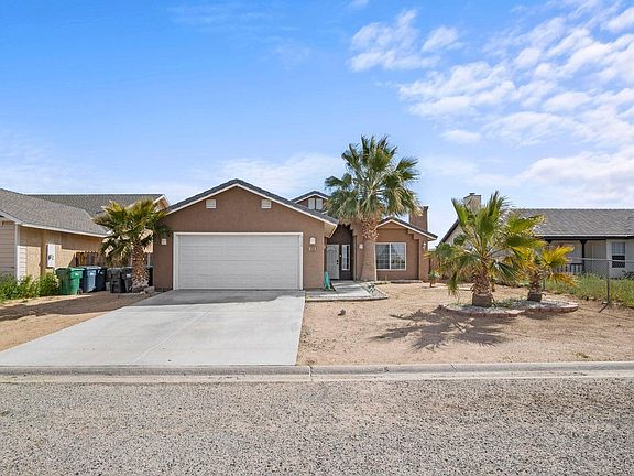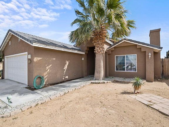 This stunning 2005-build home features a spacious layout with over 1500 square feet of living space, boasting modern lines and large vaulted ceilings. Upon entering the property, you are greeted with a large open layout, beautiful fireplace with mantel, and arched doorways leading to the rest of the living areas. Adjacent to the living room, you will find a large modern kitchen, complete with stone counters, bar-style seating and a separate formal eating area that looks over the backyard. Heading down the hallway, you will find a separate laundry room, and an additional 3 bedrooms and 2 bathrooms. The main owner's suite continues with the vaulted ceilings, and showcases ample space with 2 separate closets, a large bathroom with garden-style tub and lots of natural light. Built in a newer section of California City, this home is sure to check all the boxes, come take a look and find the home you have been waiting for!