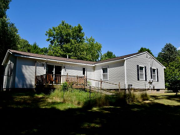 This 2 Bedroom, 2 Bath home has a huge bonus room with kitchenette cabinets, sliding glass door with ramped entrance and zero threshold shower in the combo full bath/laundry room. This added space could be a fully functioning apartment or master suite. It even has it's own electric service. The rest of the house has a nice flow from the eat-in kitchen to large living room with lots of natural light. The bedrooms are across the hall from each other with another full bath off the living room. There's plenty of storage space between the oversized attached garage and the full, unfinished basement. A creek runs thru the property at the bottom of a wooded hill, perfect for childhood adventures and explorations, right in your back yard! Close to the school, Main Street, Portage Lake and Lake Michigan!
