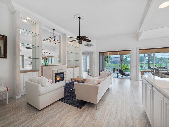 This Meticulous Oakmont model has a Joanna Gaines feel throughout the home. The home offers 3 bedrooms,den, 2.5 baths and a 2 car garage. The kitchen is open with new stainless steel appliances, quartz counter tops and 42'' white wood cabinets. The family room offers a beautiful built in wall unit with an electric fireplace. The flooring in the family room and Master bedroom are in a wood like white wash and the 2nd and 3rd bedroom are done in a light distressed wood. Enjoy your evenings on the covered patio which opens up to your fenced in yard and beautiful lake views. This community has so much to offer from tennis courts, basketball courts and a beautiful gym. Schedule your appointment to view this beautiful home and community.