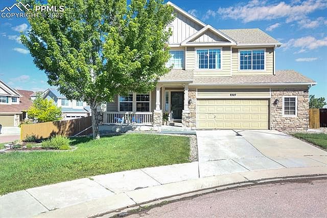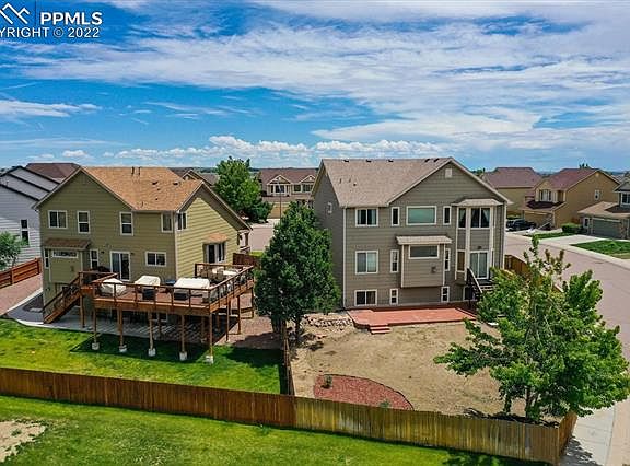 This beautifully well maintained two story has over 4200 of total square feet and almost 3000 finished square feet. The home is on a large corner lot with a big back yard, a nice front porch and it backs to an open space/green space park. Solar panels stay with the home and are paid off. The inside of the home has 2 living rooms on the main level, 2 dinning rooms spaces, a large kitchen with stainless steel appliances, an office and a laundry room. The 2.5 car garage is right off the office and kitchen. The upstairs has 4 bedrooms, 2 bathrooms and a loft. The master is an updated 5 piece and the entire upstairs has new flooring throughout and the entire home has new paint. The basement has approximately 1400 square feet of insulated unfinished square footage for storage, workout space, toy and play area, etc... This home is close to the military bases in town, shopping, dinning and i-25 if you need to get anywhere in town. Come see this beautiful home today.