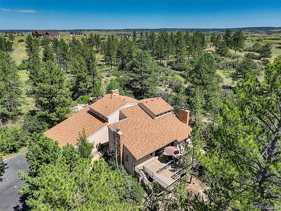 **PRICE REDUCED $61K** Nestled on five acres of heavily treed land, this 3,235 square foot two-story home offers four bedrooms, two and one-half bathrooms and a wonderful blend of modern comfort and rustic charm. Step into a grand foyer and follow the hardwood flooring that flows through the main level leading to the sunken living room with wood burning fireplace and formal dining area with vaulted ceilings. The cozy family room features a wood-burning fireplace, gorgeous wood ceiling and access to the deck. The kitchen boasts Granite countertops, Maple cabinetry, a new GE Profile double oven and gas cooktop, catering to culinary aspirations. The main floor primary bedroom is a retreat of its own, offering a wood-burning fireplace, walk-in closet, vanity and an ensuite with a soaking tub and updated shower, ensuring relaxation. A powder bath and a conveniently located laundry room complete the main level for ultimate practicality. Upstairs, three bedrooms await, alongside a spacious bathroom with Quartz countertops and dual sinks. Two bedrooms feature walk-in closets, while a loft with vaulted ceilings adds versatility with a built-in desk. Outside, the Stucco exterior complements the serene landscape. With two furnaces, two AC units and a generator with a hook-up to the circuit breaker box, comfort is ensured year-round. An unfinished walk-out basement, three-car garage and shed provide ample storage. Outdoors, newer stucco exterior, a tiered composite deck and mature trees invite you to embrace Colorado's beauty.