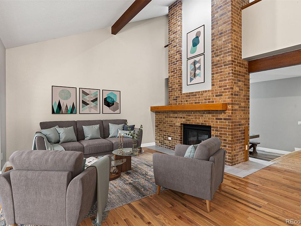 - Description: Large Space With Vaulted Ceiling And Brick Wood-Burning Fireplace. Picture Window Facing Towards The Front Allows Warm Natural Light To Blanket The Space.