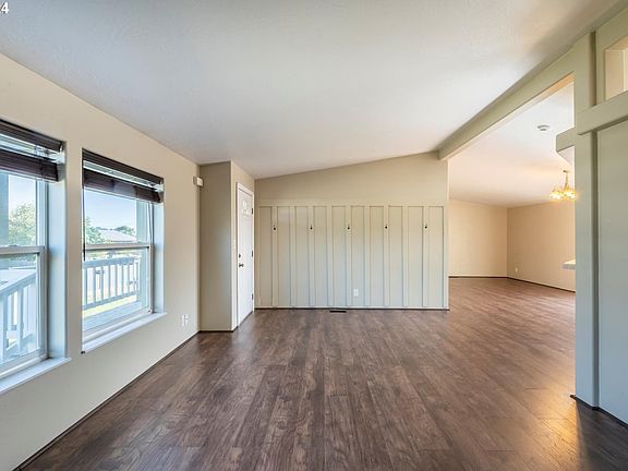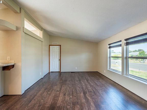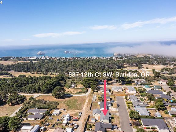 Welcome to this inviting 4-bedroom, 2-bathroom manufactured home, built in 2003, featuring a spacious 1,728 sqft split floor plan in an established neighborhood. Step through the covered porch entry into the living room filled with natural light, which seamlessly flows into the expansive kitchen. The kitchen offers countertop seating, appliances, and a large pantry for storage. Just off the kitchen, the laundry room—equipped with a washer and dryer—provides convenient access to the oversized detached garage via an enclosed breezeway, ensuring you stay dry year-round. The dining area has a sliding glass door that opens to the backyard deck, perfect for outdoor dining and relaxation. The backyard is a fully fenced, grassy space complete with an additional shed for your storage needs. This home has been recently updated with new flooring, a new roof, fresh paint, and a new deck. Located less than a mile from beach access, the city park, library, Sprague Theater, community center, grocery store, and the quaint shops and restaurants of Old Town Bandon, this home offers the perfect blend of comfort and convenience. Don't miss out on this opportunity to live near the coast in beautiful Bandon, Oregon!