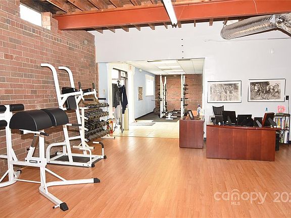 Great space, has lots of possibilities. 4650 heated sq ft, mostly open. 11 ft ceiling, 2 loading docks ( 1 is being also used as an entrance with steps and ramp ) Current use is a personal training studio. Laminate floors, brick walls, high ceilings. could be used for warehouse, showroom, storage. 900 sq ft is currently used as a men's and woman's dressing and locker area. 3.5 bath rooms and showers. Tile and carpet. Could be converted to office space. 25 parking spaces with an area at the bottom of the parking lot that is fenced , about 100 X 85 with large rolling gate, would make great outdoor storage space. HVAC new 2014.