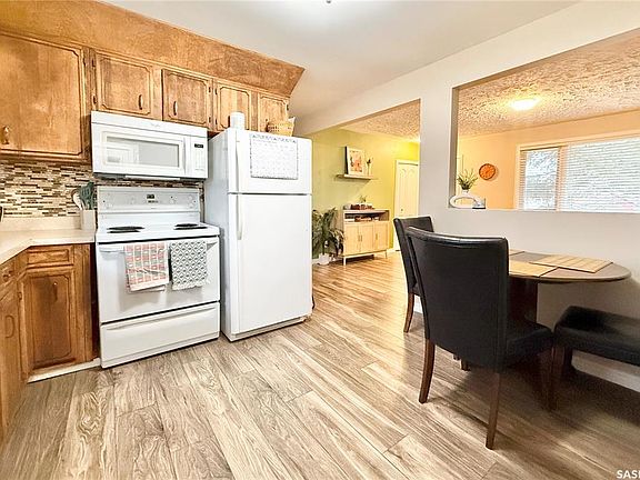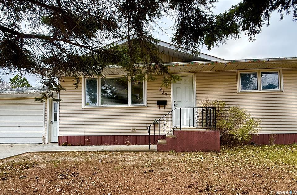Welcome to this charming 2-bedroom, 1-bathroom home in Humboldt, SK! This move-in ready gem offers plenty of potential for future upgrades. Entering through the insulated, single-attached garage, you'll find a cozy kitchen and dining area with open views to the living room. The home features laminate flooring throughout, with tile in the bathroom, two adequately sized bedrooms, and a spacious 4-piece bathroom. The main floor boasts triple-pane windows, glass backsplash, white appliances, a quaint eating nook, and a beautifully painted feature wall. The large basement is open for development, making it an easy project to finish. Outside, the fully fenced backyard offers plenty of green space, trees, a patio, and a shed. Recent updates include windows, doors, flooring, bathroom, and backsplash in 2015, furnace, water heater, and central AC in 2016, and new shingles in 2022. The washer/dryer are new from 2025. The backyard also features brand-new fencing, and the handmade garden boxes are negotiable, while the metal pergola on the patio could stay. Conveniently located near schools and parks, this home is a must-see!
