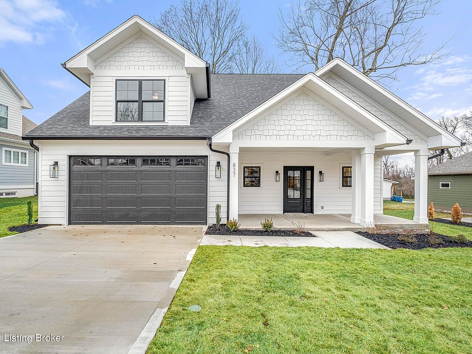 and outdoor entertaining spaces including a covered front porch and a screened back porch area overlooking the beautiful lot.