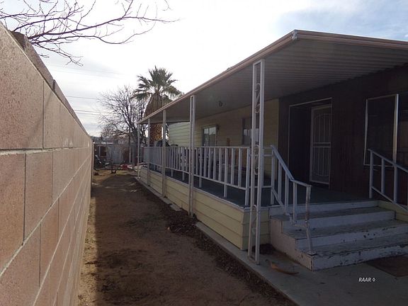 Spacious 2 bedroom, 2 bathroom, plus office Double-Wide Mobile Home on permanent foundation. 2 full Baths with his & her's sinks with a vanity in the master bath. Has both A/C and Swamp cooler. Natural Gas furnace with central air. Indoor laundry and large open kitchen flowing into the dining area including a built in wet bar to entertain your guests. Large Covered Front Porch, large fenced yard with block wall fencing along perimeter, dog run, mature trees with RV Parking and hook ups That's close to front base entrance. Mobile is on a very nice sized lot and you own the land, NO space rent! Remember don't sweat the summer heat, there is dual cooling (AC+Cooler) no more muggy days!