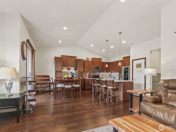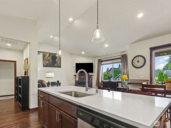Modern rambler with large bonus room above the garage—ideal for guests, office, or play space. The open layout kitchen is the heart of the home, featuring a spacious island, pantry, beautiful cabinetry, luxury countertops, & gas range (with pot filler)—a space that brings everyone together; bright, functional, & made for connection. Enjoy morning coffee on the front porch then evenings on the covered back deck (with gas BBQ hookup) overlooking a fully fenced, beautifully landscaped yard. The primary suite is separate from the other bedrooms & includes an oversized spa-like shower, dual-sink vanity, & walk-in closet. Also features a large hallway, wide stairs, & modern flooring & finishes. Near schools, parks, & shopping for an easy commute.