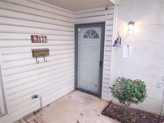 This condo is more like a duplex. It's a one-story unit that only shares one common wall with the next door neighbor. It's just inside the gated entry and surrounded by the green belt on two sides, so it's cozy and somewhat secluded. There's a nice front porch and two patio areas to enjoy the backyard. Yes, there is a backyard that is extremely rare with condos. The backyard is ample sized for a swing set, trampoline or just for enjoying the outdoors. Inside there are three nice bedrooms, all with walk-in closets and a living room with a fireplace and built-in bookcase. There are two full bathrooms. There is a galley kitchen with a pantry, breakfast room and borders the dining room. There's also a large storage room off the main patio. It has a long bench/counter top that would be good for hobby and craft work. There's also a loft storage area that helps to make the most out of this rare storage room. This one is a special one, with features uncommon to most condos.