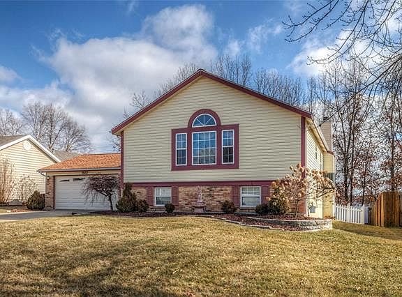 Great curb appeal on this roomy side-split (~2,300 square feet of living space here, with room left to expand in the LL!). 3BR/2.5BA/Oversized 2-Car Garage/Finished Walkout LL. Spindled stairway opens to beautiful hardwood flooring in the vaulted Family Room, Dining Room and hallway of the main level. Kitchen has lots of cabinets, neutral counters, pantry and breakfast bar. Good natural light in this home -- skylights in Family Room and hall bath, plus large front windows. Master features full bath with upgraded whirlpool walk-in tub and separate shower. Walk-in Closet. ***AWESOME SUNROOM*** off the Master -- a private oasis! Sunroom opens to a very solid composite deck. HUGE Second Family Room/Recreation Room in the LL includes gas fireplace, wet bar and half bath. Patio runs the length of the deck and sunroom. 6' White Vinyl fencing. Tidy landscaping. Roof 2016. Newer HVAC. 50-Gallon WH. SEE IT TODAY! Low maintenance home close to 364 w/St. Peters Amenities! See it today!