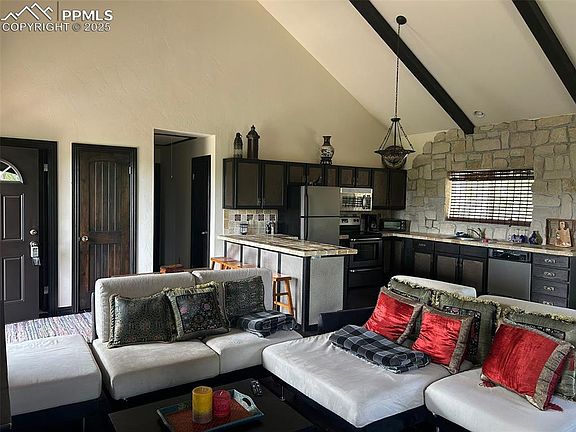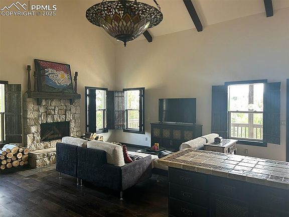 This cozy mountain home offers a rustic feel with modern comforts. The interior features 8-inch pine wood plank flooring throughout and tumble stone tile countertops in the kitchen and bathrooms. Stay warm with a fireplace and baseboard heating. The property includes a crawl space for equipment and storage. Enjoy the peace of mind that comes with a well-maintained road and fire department services, all included in the low HOA fee.