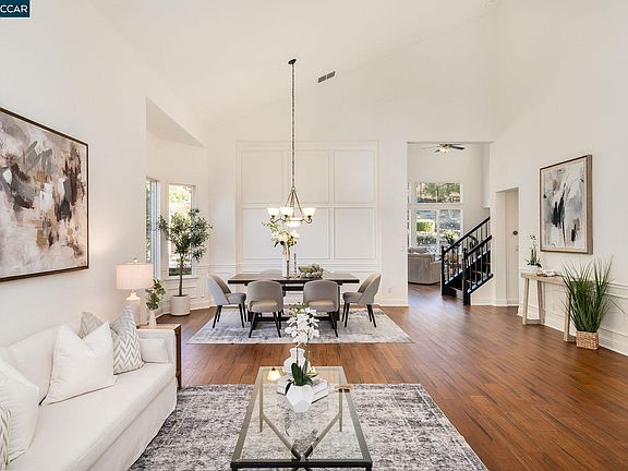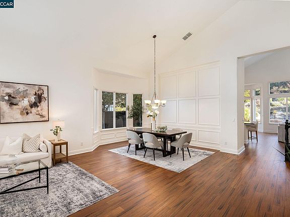 Welcome to this stunning home in the highly desirable Crystyl Ranch community, nestled against the scenic foothills of Mt. Diablo. This move-in-ready home features brand-new bamboo hardwood floors, fresh paint, and an abundance of natural light, offering both style and comfort. Step into the formal living and dining room, where vaulted ceilings create a sense of elegance and space. The kitchen is designed for both function and entertaining, boasting a gas range, large pantry, and a huge island, perfect for gatherings. Just off the kitchen, the cozy family room features a fireplace, creating an inviting space to relax. The main level includes a primary bedroom with an ensuite bath and a spacious walk-in closet, along with an optional office or fifth bedroom. Additional conveniences include a laundry room with a sink and direct garage access. Upstairs, a large loft provides versatile space. The backyard is an entertainer’s dream, complete with a sparkling pool, spa, and waterfall feature, as well as an outdoor terrace with potential for a kitchen—ideal for hosting gatherings. Backing up to open space, the yard offers privacy and a serene setting. Crystal Ranch offers a tranquil lifestyle with community parks, walking trails, and top-rated schools.