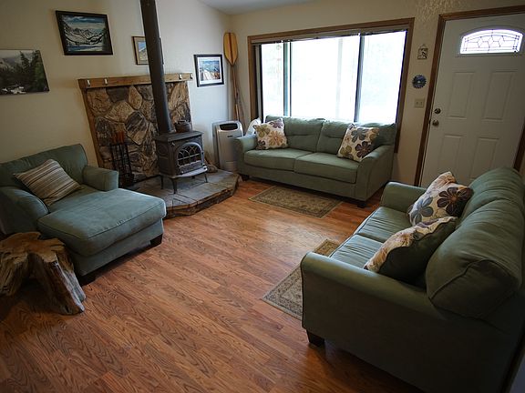 This home displays pride of ownership! It features a brand new metal roof, newer brand name appliances, sparkling quartz countertops in kitchen and bathrooms, gorgeous espresso stained cabinetry, laminate wood floors throughout, and vaulted ceilings. The wood stove heats the entire home! The garage is huge, and gives ample shelving. Secluded, quiet, and nestled among mature trees, this is country living! 2.12 acres with INCREDIBLE views, fruit trees, and equestrian easement borders one side! MUST SEE!!