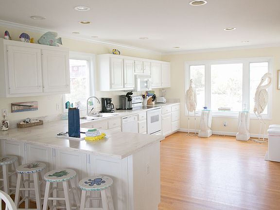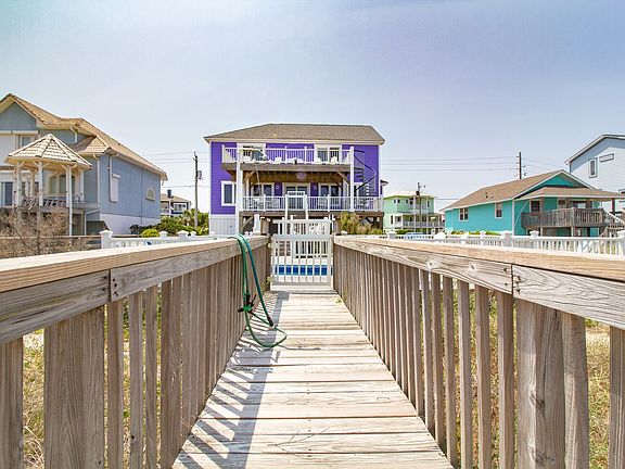Are you moving to the area, looking for that once-in-a-lifetime oceanfront experience with your family before you purchase your new home? Kure Dreamin' has everything you could ever dream of. Oceanfront, with your private beach access. Private saltwater outdoor pool with surround deck and outdoor seating. Gorgeous sunrises over the water and sunsets that wrap around the house. Private driveway/parking pads for up to 6 vehicles, perfect when family and friends come to visit. 2 car garage. Enjoy the outdoor shower for easy clean up before heading inside. Covered oceanfront porches off the house with generous seating and easy living. Enjoy the primary bedroom with an ensuite bathroom on the same level as the living area, along with the family-friendly kitchen with a large dining table for all your family meals. You will also find a half-bath convenient. Your top floor offers you a sun deck with outdoor furniture so you can soak up the amazing ocean views. Perfect spot to watch the pods of dolphins and pelicans play in the water. The top level has four bedrooms with Jack N Jill bathrooms. Two of the bedrooms connect to the sun deck with outdoor furniture. Total bed count: 1 King, 3 Queen, 1 Twin/Queen Bunkbed (also available: sleeper sofas and rollaways). Please note: Kure Dreamin' does not have an elevator and is not pet-friendly. Kure Dreamin' is currently getting an interior paint job and some new furniture. Not reflected in the pictures.