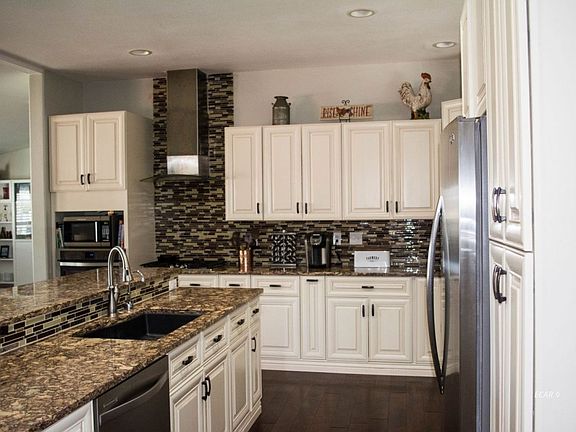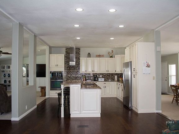 Triple Wide with 2 family rooms, walk in closets remodeled NEW KITCHEN PAINT, DECKS, GREENHOUSE, Vinyl Fencing and more. This property has potential to split off west side for another home! 5 Bedrooms, 3 baths. glass tile in kitchen, 2 central air units and 2 hot water heaters, NEW flooring. A Must See! Garage has separate workshop plus a carport runs the entire east side of garage for more toys! Custom Cabinets and built ins, granite countertops, Greenhouse, storage shed, trex decks, 2 central air units, 2 electric hot water heaters, all electric heat but propane cooktop, formal living and dining. Stainless appliances. This home has new paint in and out and is a Showcase!